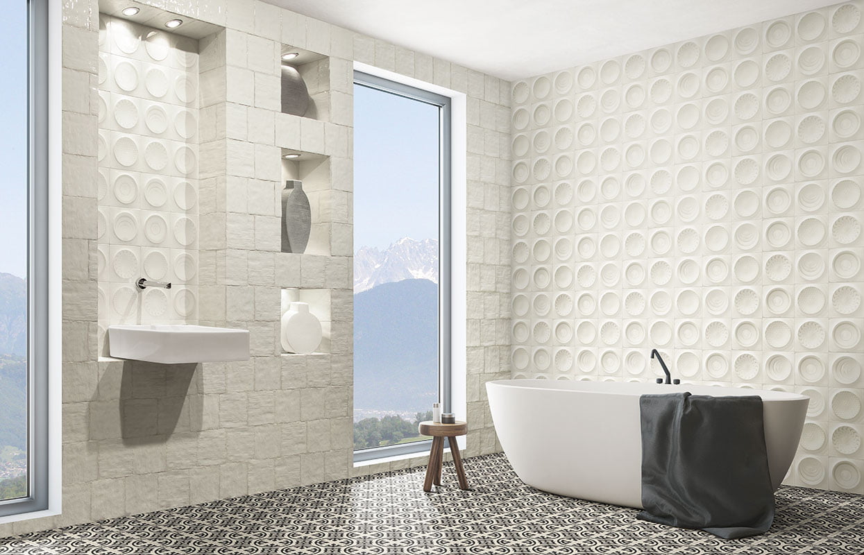 Коллекция испанской плитки Mainzu Artigiano выполнена в актуальном винтажном стиле и представлена в перламутровой и бежевой цветовой вариации. Главные составляющие этой керамики: приглушенная натуральная палитра, рельефная фактура, состаренные детали и трехмерные узоры.