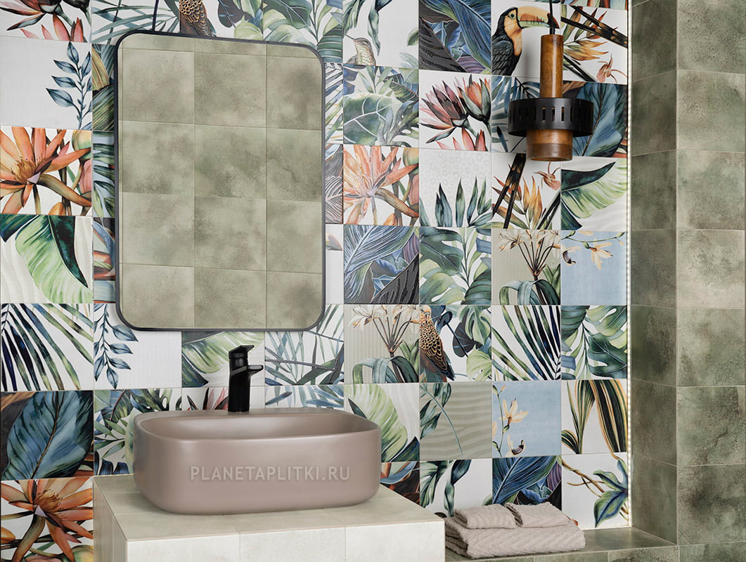 Испанская настенная керамика Mainzu Tikida – эксклюзивное предложение сети салонов «Планета Плитки». Яркая и жизнерадостная коллекция смело обыгрывает сразу несколько модных трендов: пэчворк, имитацию бетона и растительные принты. Каждый из них по отдельности – может стать идеальным интерьерным дополнением, а их микс способен решить самую сложную дизайнерскую задачу.