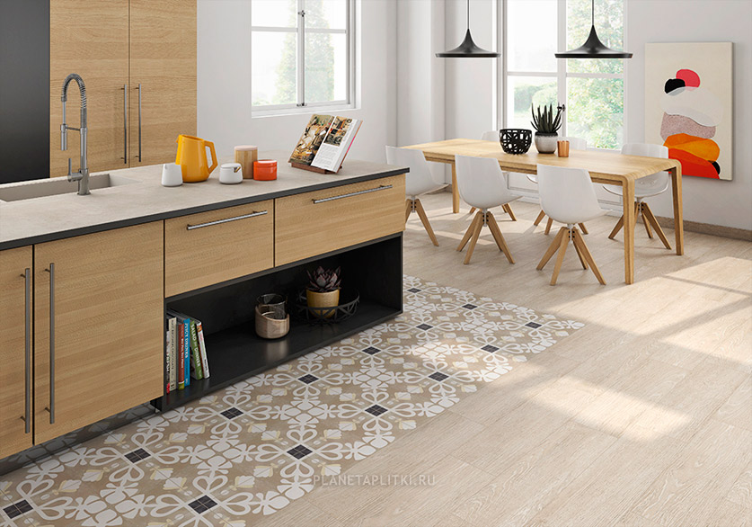 Безупречно ровная поверхность и матовая фактура создают приятные тактильные ощущения, а классический формат 22,3х22,3 см керамогранита удобен для выкладки помещений различной площади. Именно поэтому насыщенный рисунок Pamesa Art органично выглядит в оформлении как небольших кухонь или ванных, так и просторных гостиных и нестандартных входных групп.
