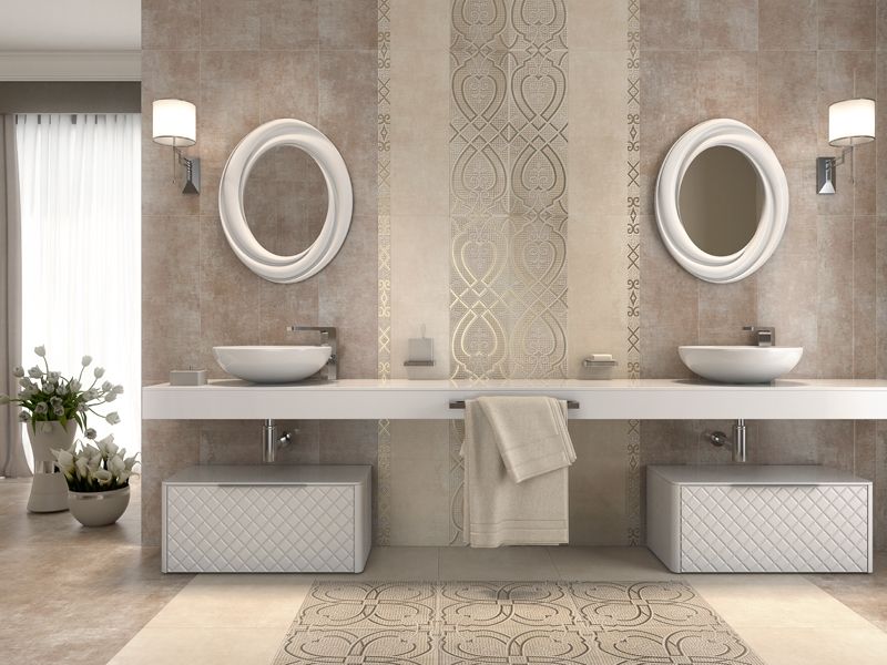 Коллекция включает широкий перечень дизайнерских инструментов, включающий простые базовые элементы для облицовки пола и стен, настенный и напольный декор, имитацию мозаики и бордюр. Цветовая гамма с матовой фактурой колеблется от светлых песочных оттенков Marfil, до серо-коричневого Taupe. Формат 25х70 см и 45х45 см соответствует актуальному модному тренду на большеразмерную плитку.