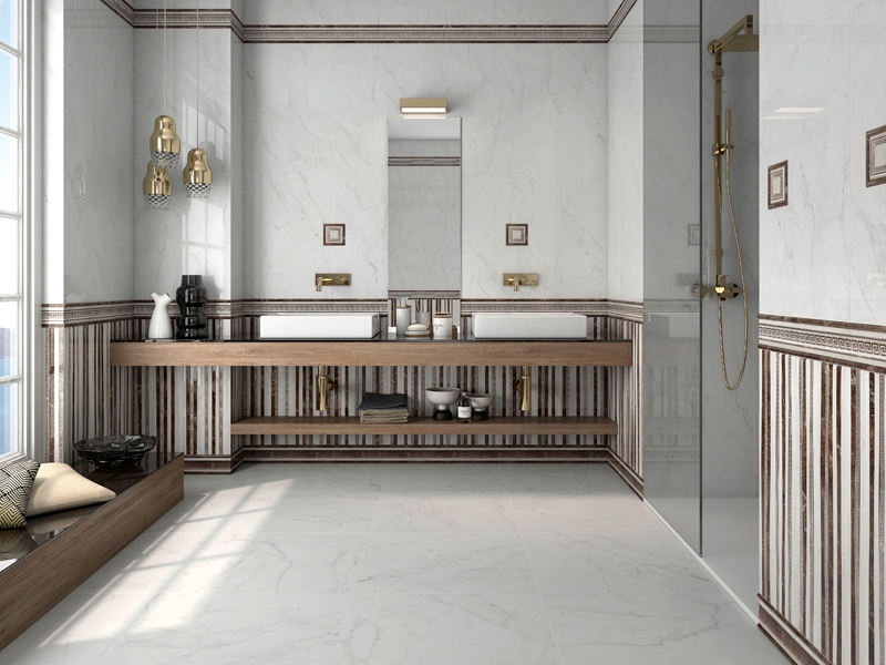 Основной изюминкой линейки служит традиционный греческий узор. Pamesa Atrium Sigma можно купить для отделки просторных холлов, ванной, кухни и входных групп.