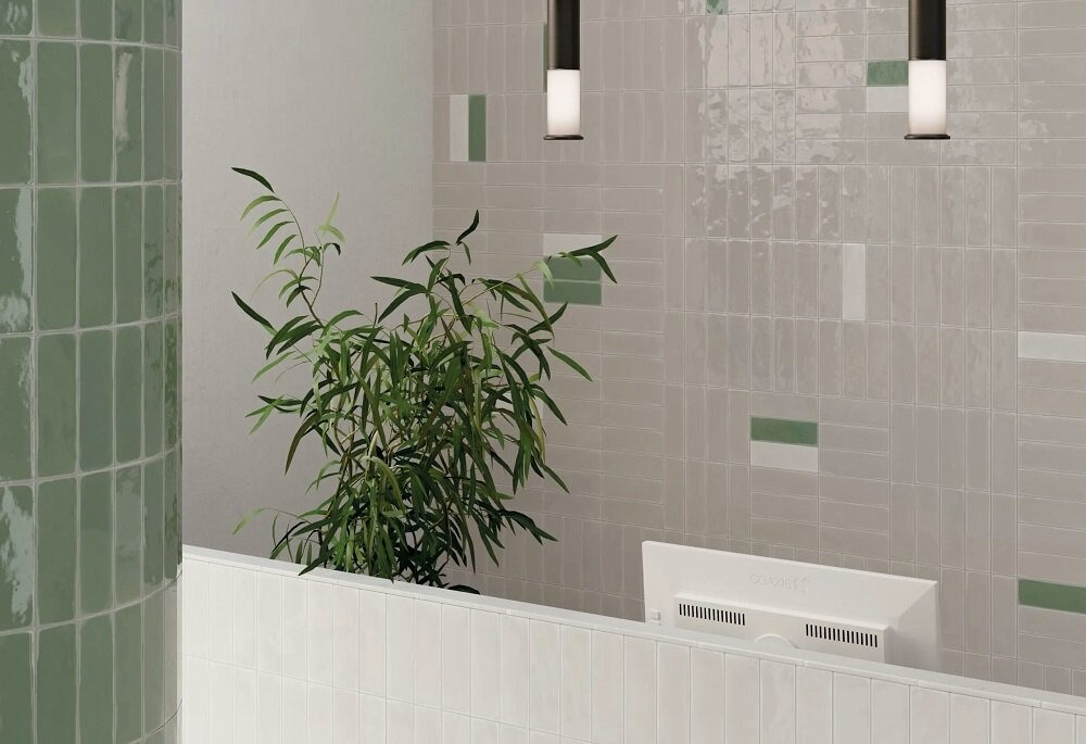 Коллекция керамогранита Rebels от испанской фабрики Wow представлена в девяти цветах с матовой и глянцевой поверхностью. Вертикальная укладка плитки подчеркивает простоту классического кирпичного формата. Модульная конструкция плитки позволяет создавать бесконечное количество композиций, включая узоры в виде полос, шеврон или елочку.