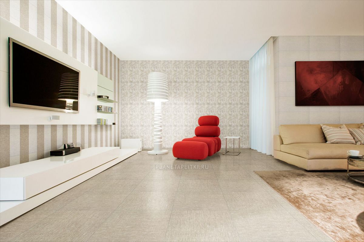 Не менее элегантно выглядит серая керамическая плитка, имитирующая внешний вид обоев. Изящный рельефный рисунок коллекции Azteca Tempo ничем не уступает традиционному покрытию стен, поэтому может использовать при облицовке классических гостиных и столовых. Благодаря устойчивости к повышенной влажности линия хорошо смотрится и в современном интерьере кухни, ванной и прихожей.