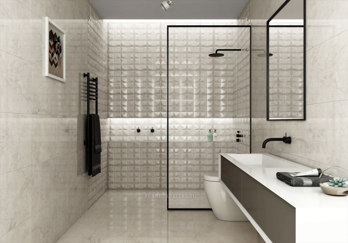 Строгая палитра в союзе с оригинальной фактурой способна воссоздать ощущение объемной поверхности. Коллекции Narni и Atrium Mys от фабрики Pamesa, отличаются рельефным геометрическим узором, похожим на игру теней и придающим поверхности эффект оригами.